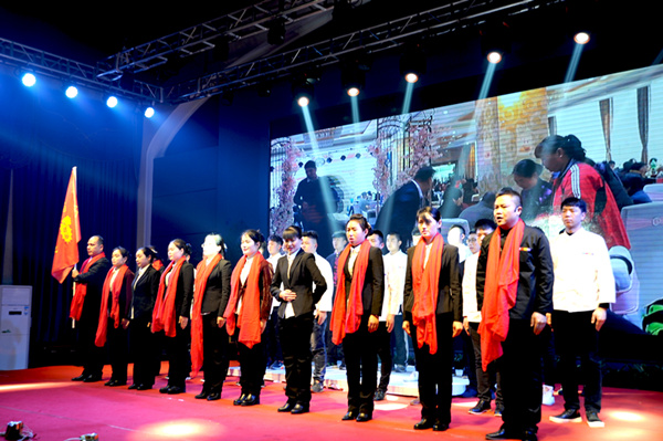 迪尼斯酒店開元店表演的團(tuán)隊(duì)風(fēng)采《眾志成城·從頭再來》是公司員工紀(jì)律、業(yè)務(wù)、才藝、禮儀與團(tuán)隊(duì)精神的綜合展示,獲得二等獎(jiǎng),獎(jiǎng)勵(lì)2000元;