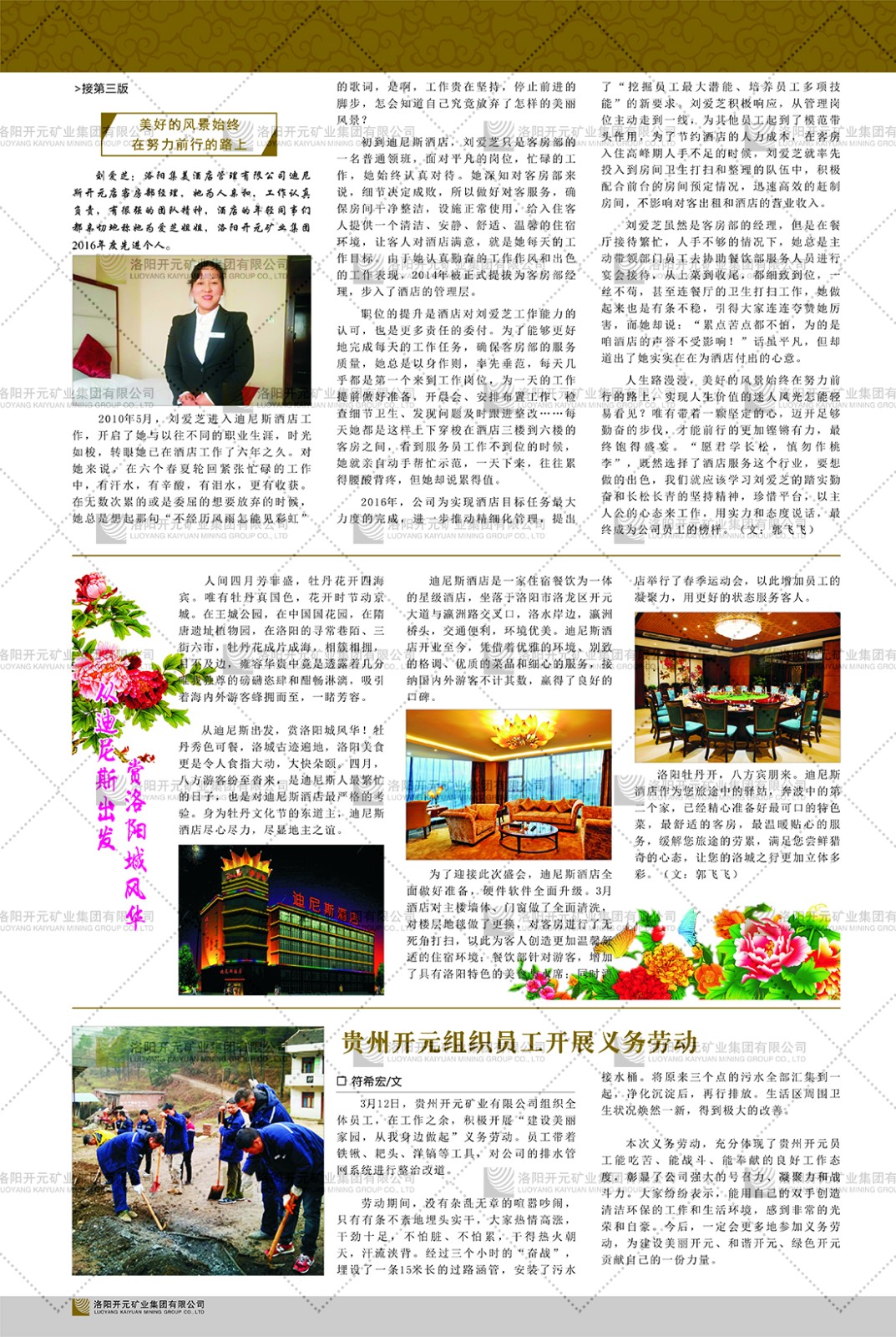 洛陽開元礦業(yè)集團(tuán)有限公司簡介洛陽開元礦業(yè)集團(tuán)有限公司,始成立于2006年,位于洛陽市開元大道269號(hào)。集團(tuán)旗下共有十余家全資子公司,業(yè)務(wù)涉及有色金屬礦山開發(fā)、礦產(chǎn)品購銷與進(jìn)出口貿(mào)易、房地產(chǎn)開發(fā)、文化藝術(shù)、企業(yè)管理與咨詢、資本投資等多個(gè)領(lǐng)域。2024年,集團(tuán)公司銷售總額達(dá)7.8億元。民建河南省委委員、民建河南省委企業(yè)委副主任、民建洛陽市委委員、企業(yè)委主任、洛陽民建企業(yè)家協(xié)會(huì)會(huì)長許明月是公司創(chuàng)始人,現(xiàn)任洛陽開元礦業(yè)集團(tuán)有限公司董事長。在礦業(yè)領(lǐng)域,洛陽開元礦業(yè)集團(tuán)擁有多家實(shí)力雄厚的子公司:貴州開元礦業(yè)有限公司探、采礦權(quán)面積共11.33平方公里;興海縣銅鑫礦業(yè)有限公司探礦權(quán)面積8.76平方公里,礦山資源潛力巨大;2021年,開元集團(tuán)與盧氏中科礦業(yè)有限公司開展戰(zhàn)略合作。盧氏中科礦業(yè)有限公司專注于有色金屬的浮選、加工和銷售,擁有強(qiáng)大的技術(shù)支撐平臺(tái),是集探、采、選、冶、研為一體的中大型綜合礦業(yè)企業(yè)。目前,盧氏中科王家河1000噸選礦廠已成功投產(chǎn),雙河金礦、柳關(guān)欒盧鉛鋅礦相繼順利開工,樓房銀礦與圪老灣鉛鋅礦的深部探礦重大突破,標(biāo)志著礦山版圖取得重大進(jìn)展,為開元集團(tuán)后續(xù)發(fā)展奠定了堅(jiān)實(shí)基礎(chǔ)。在文化傳媒領(lǐng)域,洛陽市明月美術(shù)館通過豐富多樣的藝術(shù)展覽、學(xué)術(shù)研討和公共教育活動(dòng),努力打造一個(gè)集展覽、交流、教育、研究為一體的綜合性藝術(shù)平臺(tái)。此外,在金融投資領(lǐng)域,開元集團(tuán)旗下的北京明峰資本管理有限公司專注于投資具有高增長潛力的優(yōu)秀企業(yè),特別是高科技、新能源、環(huán)保等新興產(chǎn)業(yè),為客戶提供個(gè)性化的資產(chǎn)配置服務(wù)。在做好企業(yè)經(jīng)營的同時(shí),開元集團(tuán)始終不忘企業(yè)的社會(huì)責(zé)任和家國情懷,以突出的愛心公益事跡,開展了一系列公益慈善活動(dòng):“民建林”公益事業(yè)通過“思源基金”“幫幫公益”線上公益平臺(tái),與眾多愛心人士籌措資金20余萬元;資助541名貧困大學(xué)生共計(jì)270余萬元,推進(jìn)“數(shù)字助力——河南AI人才培養(yǎng)”;捐款10萬元,馳援京津冀、黑龍江洪水地質(zhì)災(zāi)害……公司于2017年底被洛陽市慈善總會(huì)評(píng)為“洛陽慈善風(fēng)云榜——十大愛心集體”。洛陽開元礦業(yè)集團(tuán)有限公司秉承持續(xù)發(fā)展理念,憑借多年來良好的企業(yè)信譽(yù)與經(jīng)營業(yè)績,與全國多家企業(yè)建立了良好合作關(guān)系,受到社會(huì)各界的一致好評(píng),多次榮獲“納稅標(biāo)兵”“先進(jìn)企業(yè)”“招商引資模范企業(yè)”等榮譽(yù)稱號(hào)?;赝麃頃r(shí)路,開元人勠力同心,以“闖”的精神和“創(chuàng)”的勁頭,一路披荊斬棘,踏過千山萬水;展望新未來,開元人凝心聚力,不執(zhí)于“舊”,無畏于“新”,秉承“勇于跨越,追求卓越”的企業(yè)精神,乘著國家高質(zhì)量發(fā)展新征程的東風(fēng),跨過高山,越過大海,向著集團(tuán)多元化、國際化的目標(biāo),逐夢(mèng)遠(yuǎn)航,跨越前行!