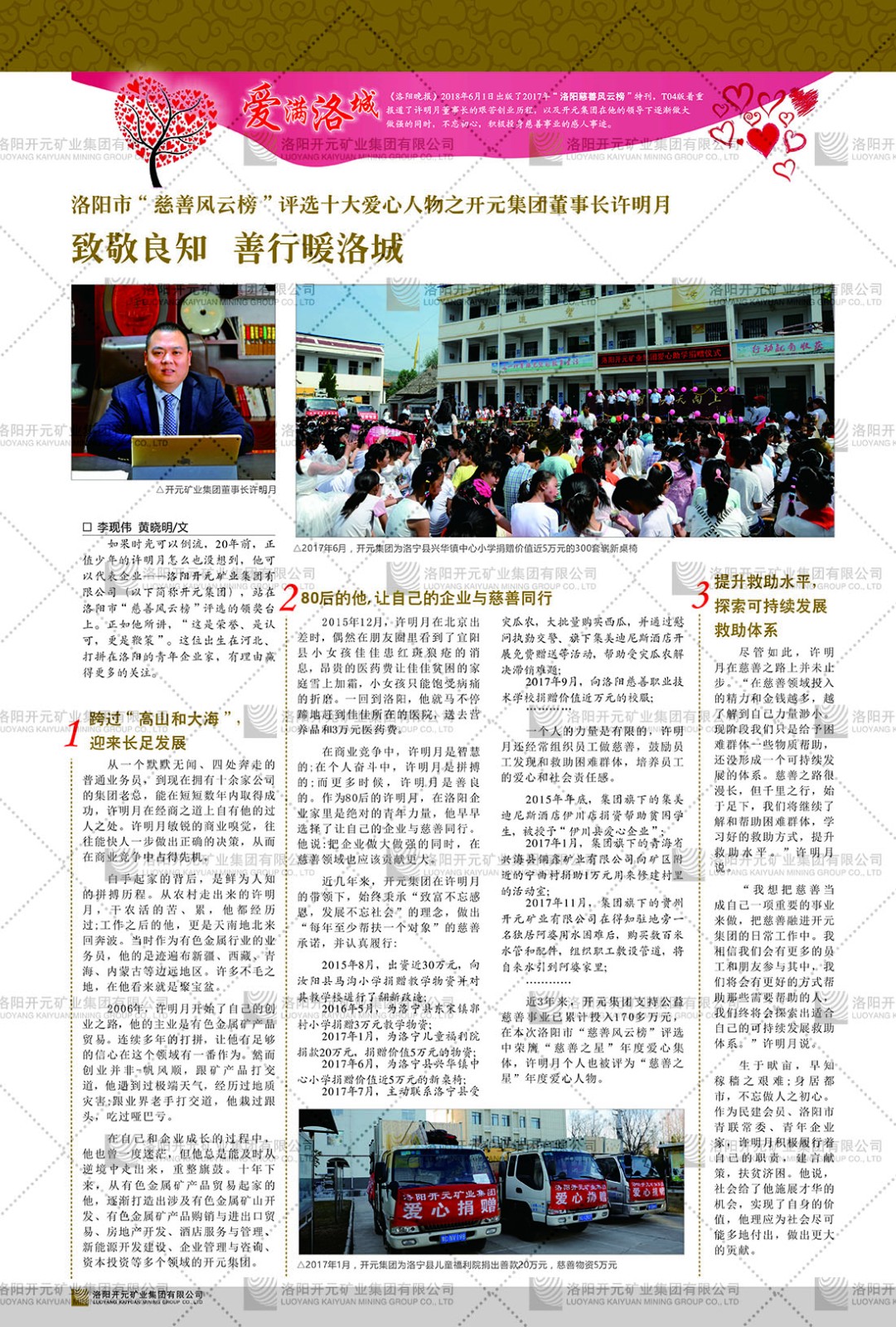 洛陽(yáng)開元礦業(yè)集團(tuán)有限公司簡(jiǎn)介洛陽(yáng)開元礦業(yè)集團(tuán)有限公司,始成立于2006年,位于洛陽(yáng)市開元大道269號(hào)。集團(tuán)旗下共有十余家全資子公司,業(yè)務(wù)涉及有色金屬礦山開發(fā)、礦產(chǎn)品購(gòu)銷與進(jìn)出口貿(mào)易、房地產(chǎn)開發(fā)、文化藝術(shù)、企業(yè)管理與咨詢、資本投資等多個(gè)領(lǐng)域。2024年,集團(tuán)公司銷售總額達(dá)7.8億元。民建河南省委委員、民建河南省委企業(yè)委副主任、民建洛陽(yáng)市委委員、企業(yè)委主任、洛陽(yáng)民建企業(yè)家協(xié)會(huì)會(huì)長(zhǎng)許明月是公司創(chuàng)始人,現(xiàn)任洛陽(yáng)開元礦業(yè)集團(tuán)有限公司董事長(zhǎng)。在礦業(yè)領(lǐng)域,洛陽(yáng)開元礦業(yè)集團(tuán)擁有多家實(shí)力雄厚的子公司:貴州開元礦業(yè)有限公司探、采礦權(quán)面積共11.33平方公里;興??h銅鑫礦業(yè)有限公司探礦權(quán)面積8.76平方公里,礦山資源潛力巨大;2021年,開元集團(tuán)與盧氏中科礦業(yè)有限公司開展戰(zhàn)略合作。盧氏中科礦業(yè)有限公司專注于有色金屬的浮選、加工和銷售,擁有強(qiáng)大的技術(shù)支撐平臺(tái),是集探、采、選、冶、研為一體的中大型綜合礦業(yè)企業(yè)。目前,盧氏中科王家河1000噸選礦廠已成功投產(chǎn),雙河金礦、柳關(guān)欒盧鉛鋅礦相繼順利開工,樓房銀礦與圪老灣鉛鋅礦的深部探礦重大突破,標(biāo)志著礦山版圖取得重大進(jìn)展,為開元集團(tuán)后續(xù)發(fā)展奠定了堅(jiān)實(shí)基礎(chǔ)。在文化傳媒領(lǐng)域,洛陽(yáng)市明月美術(shù)館通過豐富多樣的藝術(shù)展覽、學(xué)術(shù)研討和公共教育活動(dòng),努力打造一個(gè)集展覽、交流、教育、研究為一體的綜合性藝術(shù)平臺(tái)。此外,在金融投資領(lǐng)域,開元集團(tuán)旗下的北京明峰資本管理有限公司專注于投資具有高增長(zhǎng)潛力的優(yōu)秀企業(yè),特別是高科技、新能源、環(huán)保等新興產(chǎn)業(yè),為客戶提供個(gè)性化的資產(chǎn)配置服務(wù)。在做好企業(yè)經(jīng)營(yíng)的同時(shí),開元集團(tuán)始終不忘企業(yè)的社會(huì)責(zé)任和家國(guó)情懷,以突出的愛心公益事跡,開展了一系列公益慈善活動(dòng):“民建林”公益事業(yè)通過“思源基金”“幫幫公益”線上公益平臺(tái),與眾多愛心人士籌措資金20余萬(wàn)元;資助541名貧困大學(xué)生共計(jì)270余萬(wàn)元,推進(jìn)“數(shù)字助力——河南AI人才培養(yǎng)”;捐款10萬(wàn)元,馳援京津冀、黑龍江洪水地質(zhì)災(zāi)害……公司于2017年底被洛陽(yáng)市慈善總會(huì)評(píng)為“洛陽(yáng)慈善風(fēng)云榜——十大愛心集體”。洛陽(yáng)開元礦業(yè)集團(tuán)有限公司秉承持續(xù)發(fā)展理念,憑借多年來(lái)良好的企業(yè)信譽(yù)與經(jīng)營(yíng)業(yè)績(jī),與全國(guó)多家企業(yè)建立了良好合作關(guān)系,受到社會(huì)各界的一致好評(píng),多次榮獲“納稅標(biāo)兵”“先進(jìn)企業(yè)”“招商引資模范企業(yè)”等榮譽(yù)稱號(hào)?;赝麃?lái)時(shí)路,開元人勠力同心,以“闖”的精神和“創(chuàng)”的勁頭,一路披荊斬棘,踏過千山萬(wàn)水;展望新未來(lái),開元人凝心聚力,不執(zhí)于“舊”,無(wú)畏于“新”,秉承“勇于跨越,追求卓越”的企業(yè)精神,乘著國(guó)家高質(zhì)量發(fā)展新征程的東風(fēng),跨過高山,越過大海,向著集團(tuán)多元化、國(guó)際化的目標(biāo),逐夢(mèng)遠(yuǎn)航,跨越前行!
